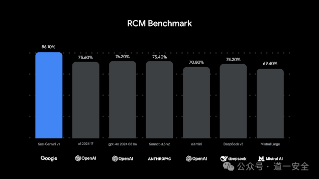 Sec-Gemini v1 在网络安全威胁情报-根本原因映射 (CTI-RCM) 基准测试中优于其他模型,该基准测试评估了 LLM 理解漏洞描述的细微差别、识别潜在根本原因的漏洞并根据 CWE 分类法准确分类的能力。